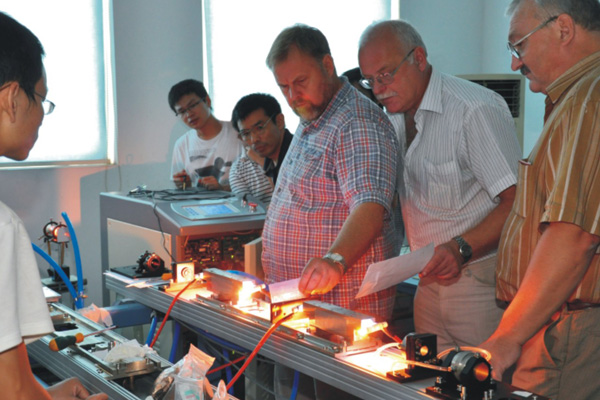 9月初,俄羅斯資深激光專家團(tuán)隊(duì)又一次親臨華俄激光公司,對(duì)華俄激光技術(shù)人員作了為期一周的全面技術(shù)培訓(xùn),并進(jìn)行實(shí)地操作調(diào)試指導(dǎo),特別是對(duì)核心激光器系統(tǒng)的調(diào)試技術(shù)作了深入講解和演示,通過(guò)俄羅斯激光專家的親臨指導(dǎo),提高了華俄激光技術(shù)人員的理論基礎(chǔ)和實(shí)際操作水平,有利于更好地發(fā)揮俄羅斯進(jìn)口激光器的優(yōu)異性能,增強(qiáng)華俄激光核心競(jìng)爭(zhēng)力,鞏固“華俄激光”打造高端品牌的戰(zhàn)略定位,提供性價(jià)比更優(yōu)的激光切割設(shè)備為廣大客戶服務(wù)。另外俄羅斯資深激光專家對(duì)公司300W和500W光纖激光切割機(jī)生產(chǎn)也提出了許多指導(dǎo)性的意見,為公司500W光纖激光切割機(jī)的成功上市提供了技術(shù)支持?!爸卸頂y手,技術(shù)領(lǐng)先”,這是“華俄激光”永遠(yuǎn)不變的經(jīng)營(yíng)宗旨。
