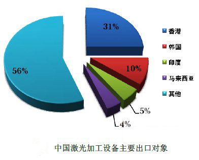 2003年至今,我國激光設備出口持續(xù)保持增長勢頭,主要出口到香港、韓國、印度等國家和地區(qū)。2007年出口總額已超過4.6億元人民幣,同比增長84%。考慮到國內激光設備在國際市場具有明顯的成本優(yōu)勢以及產業(yè)轉移與技術的進步等綜合因素,國內激光設備出口形勢將持續(xù)增長。