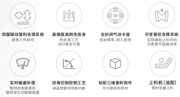 1. 專業(yè)管材控制系統(tǒng)支持方管、圓管、橢圓形等拉伸管、角鋼、槽鋼的高精度、高效率切割;